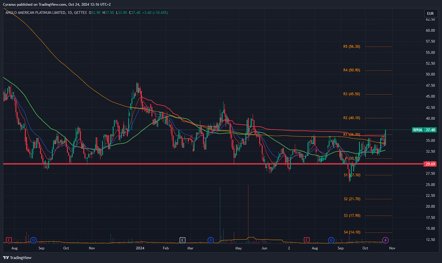 In the last post I highlighted RPHA, as a play on palladium and Platinum, today it broke out, possible marking a Reverse head an Shoulders Bottom: