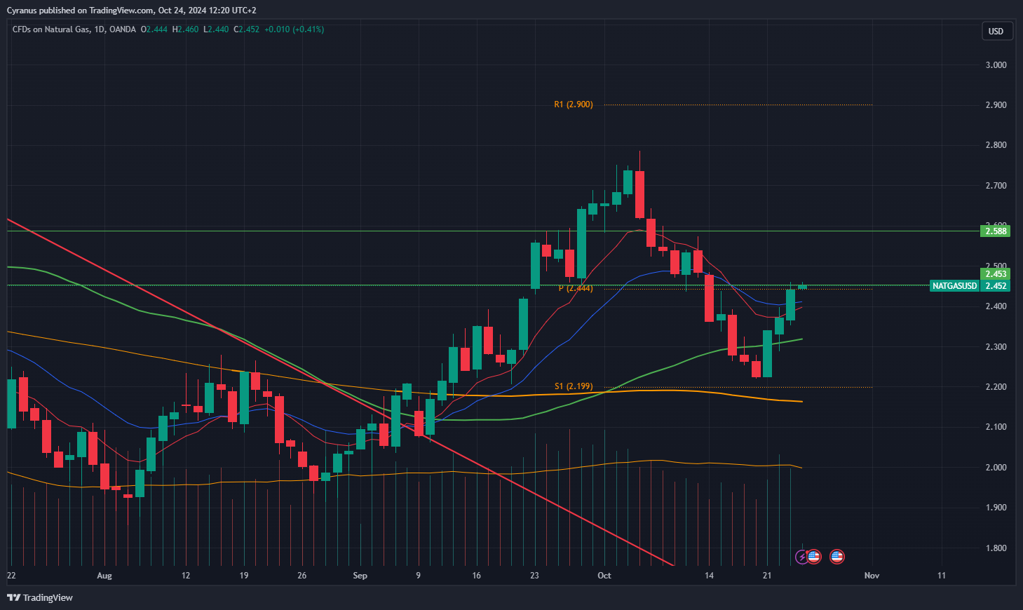 Furthermore, this morning we have a Wedge Pop through the EMAs in Crude and NatGas: