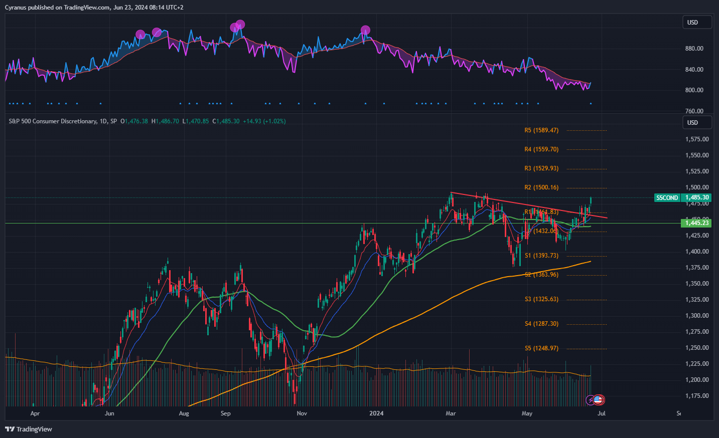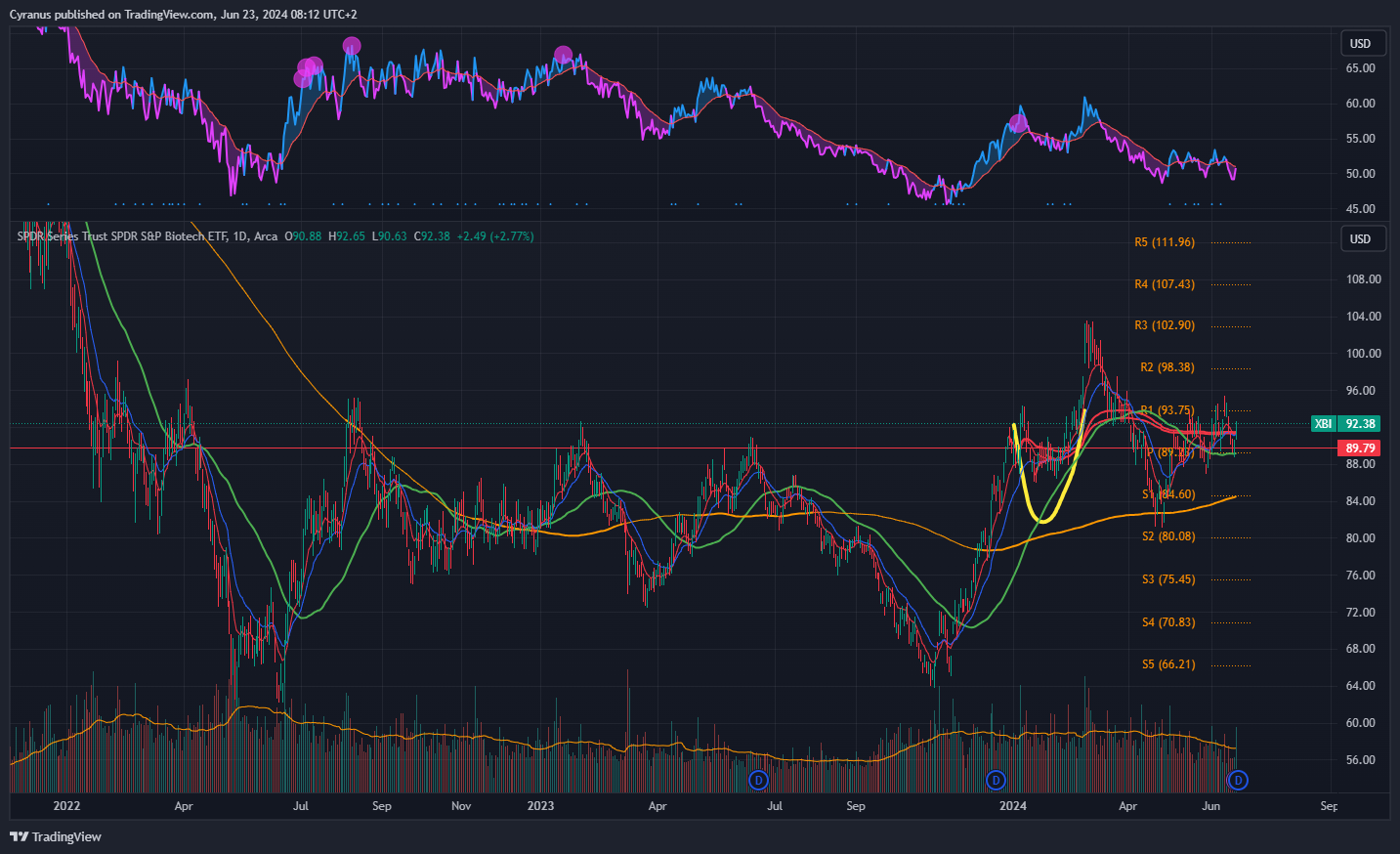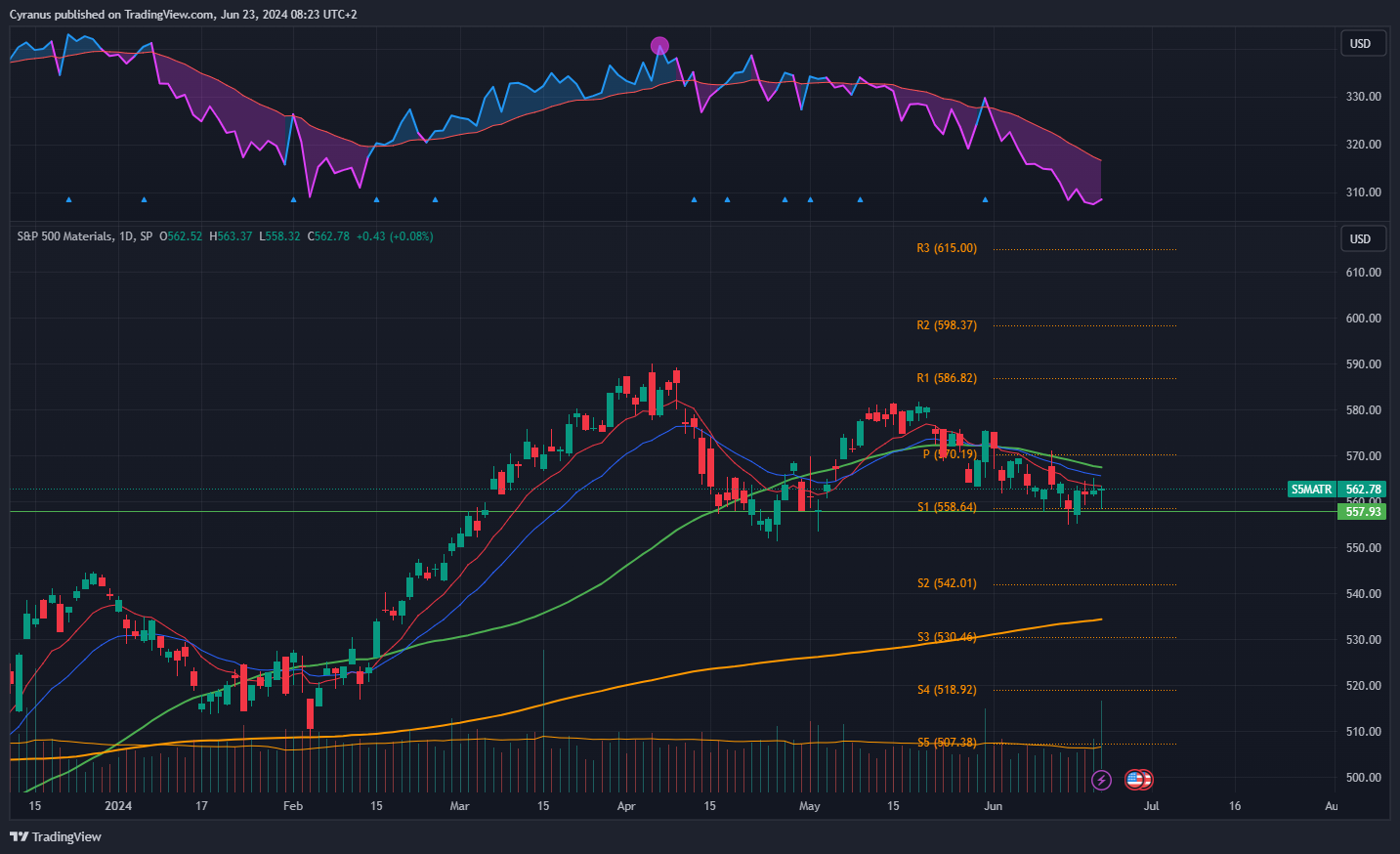 Same as financials, but below the 50DMA, still we could see some strenght coming in here.