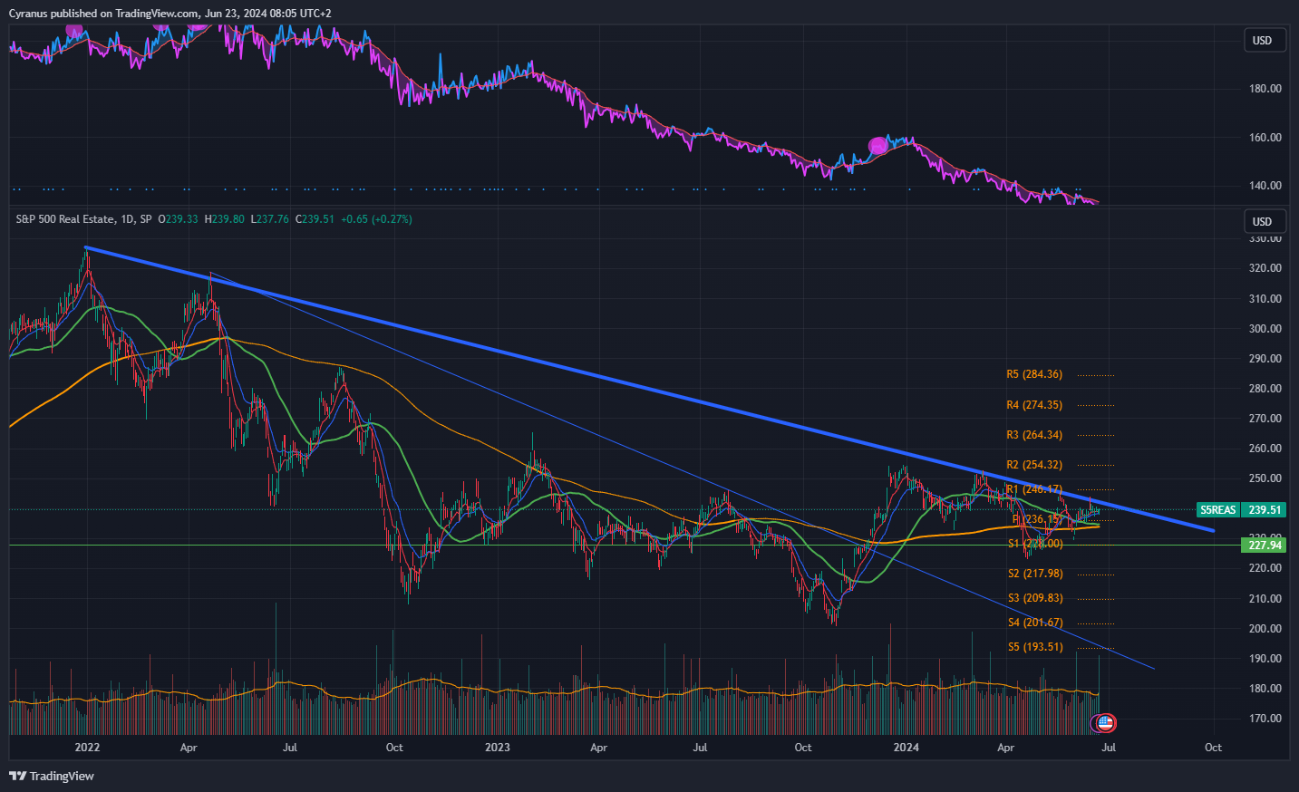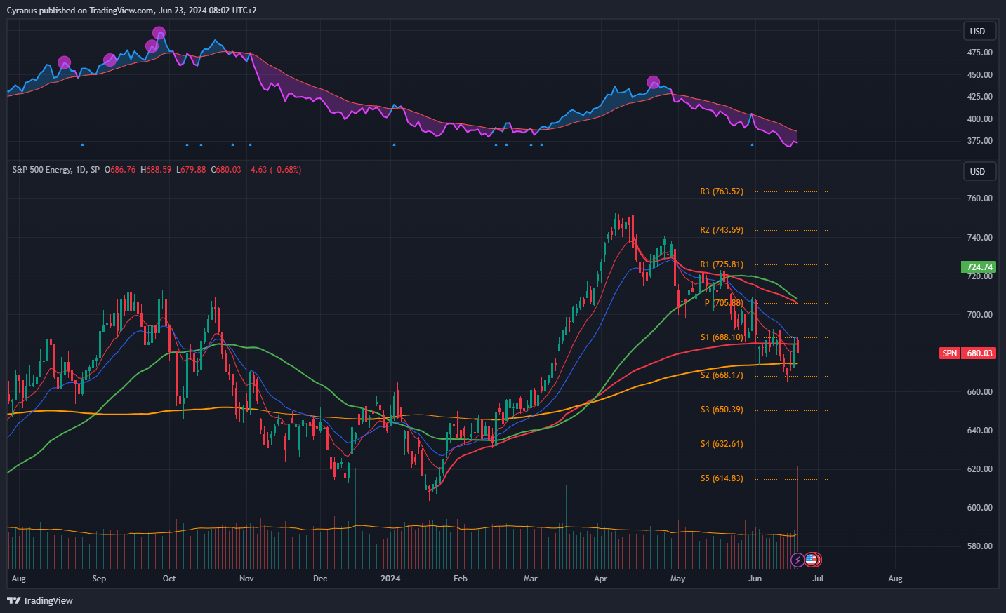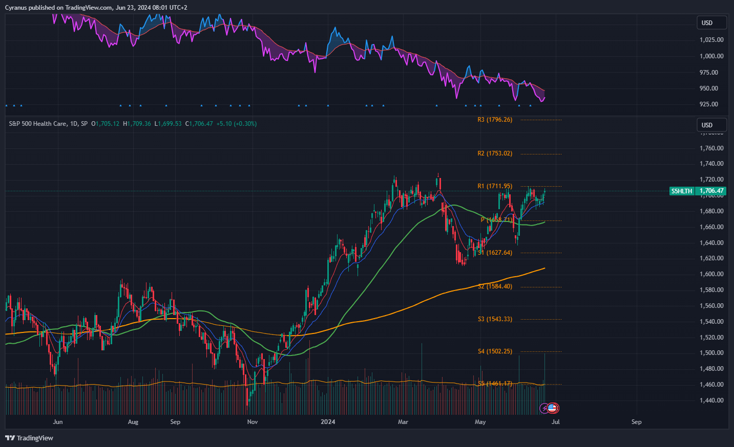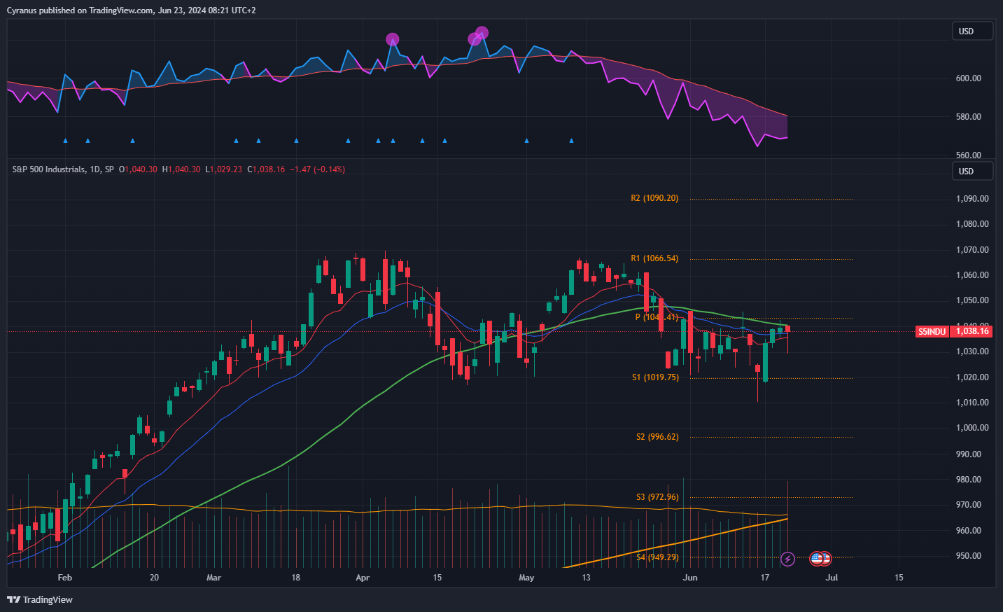 Same as financials, but below the 50DMA, still we could see some strenght coming in here.