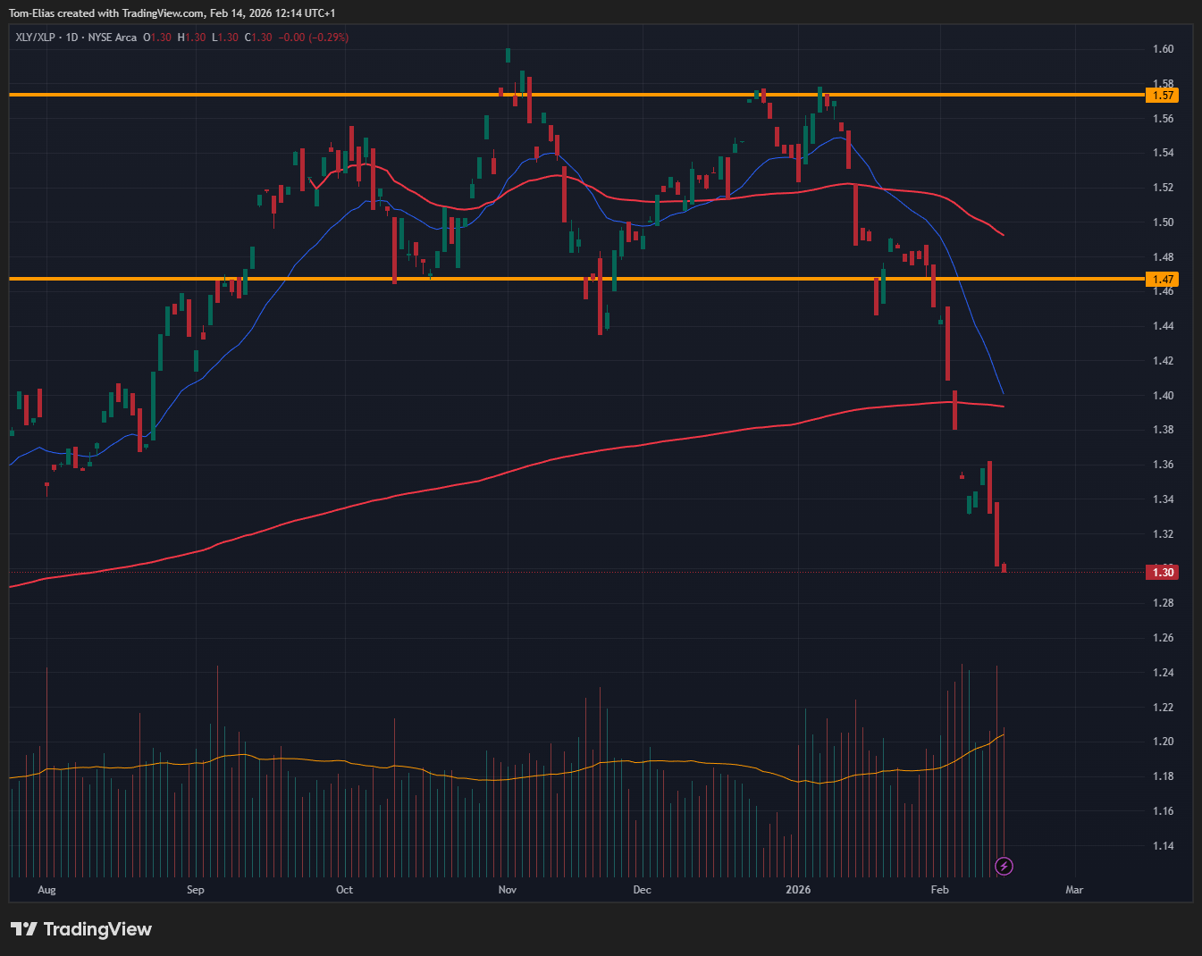 XLY/XLP Daily - Complete Breakdown here… this is very bearish!