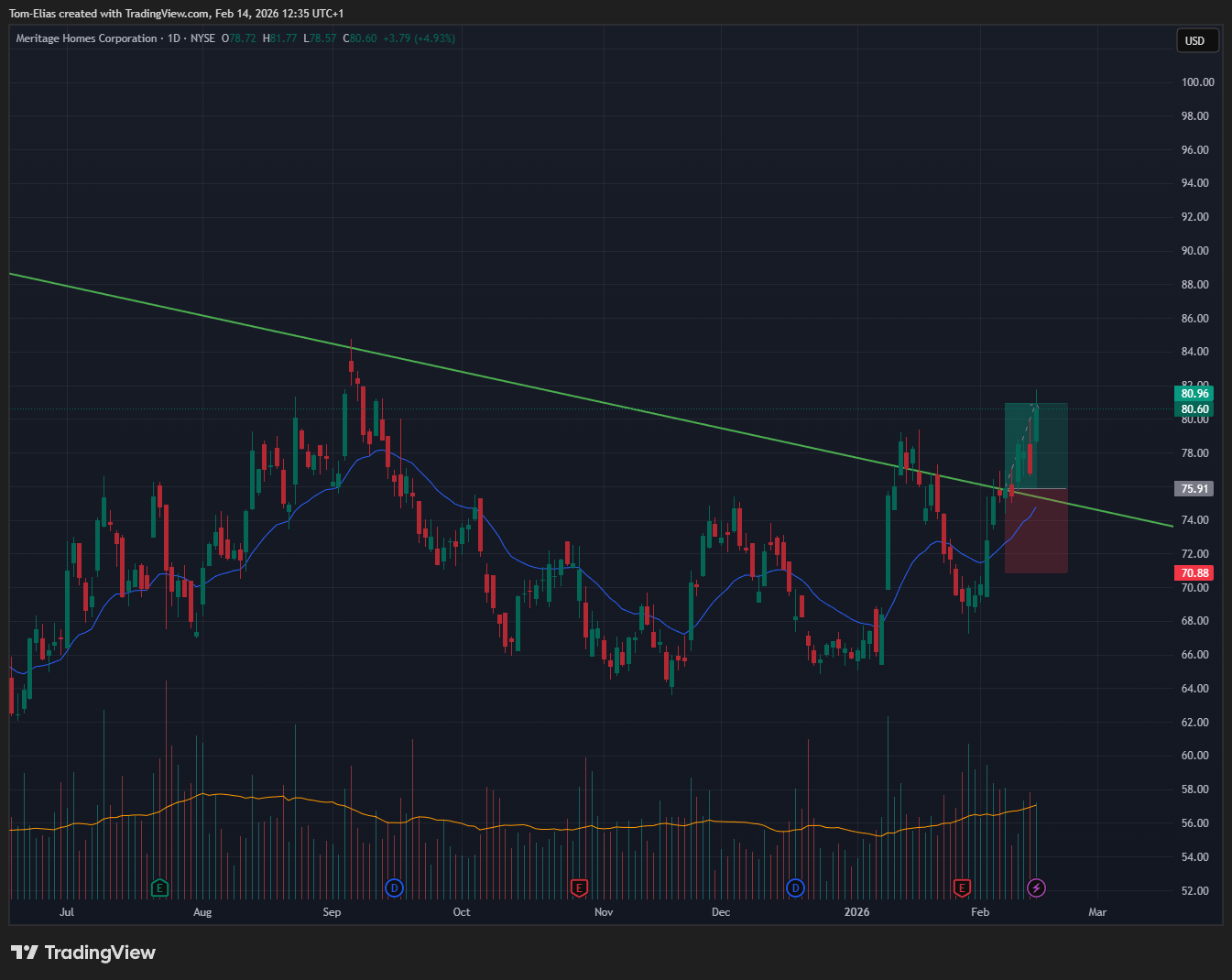 MTH - Daily: A homebuilder with a clean chart, I also noticed NAIL breaking its DTL this week.