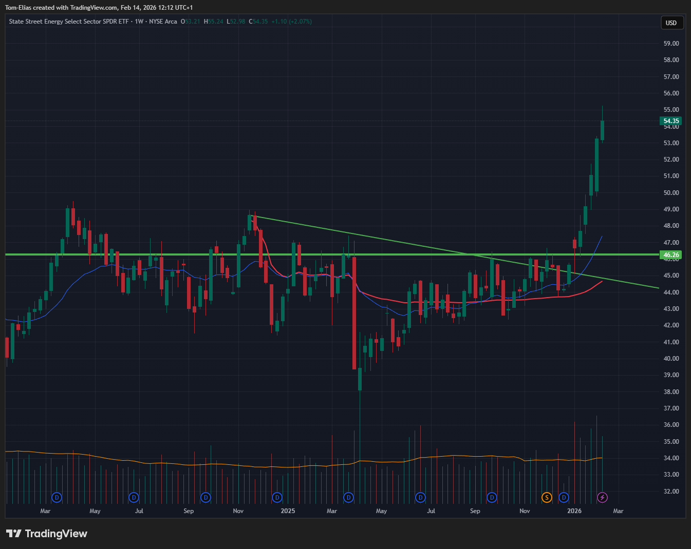 For this year, I include a chart off the XLE every week until my thesis is disproven:
