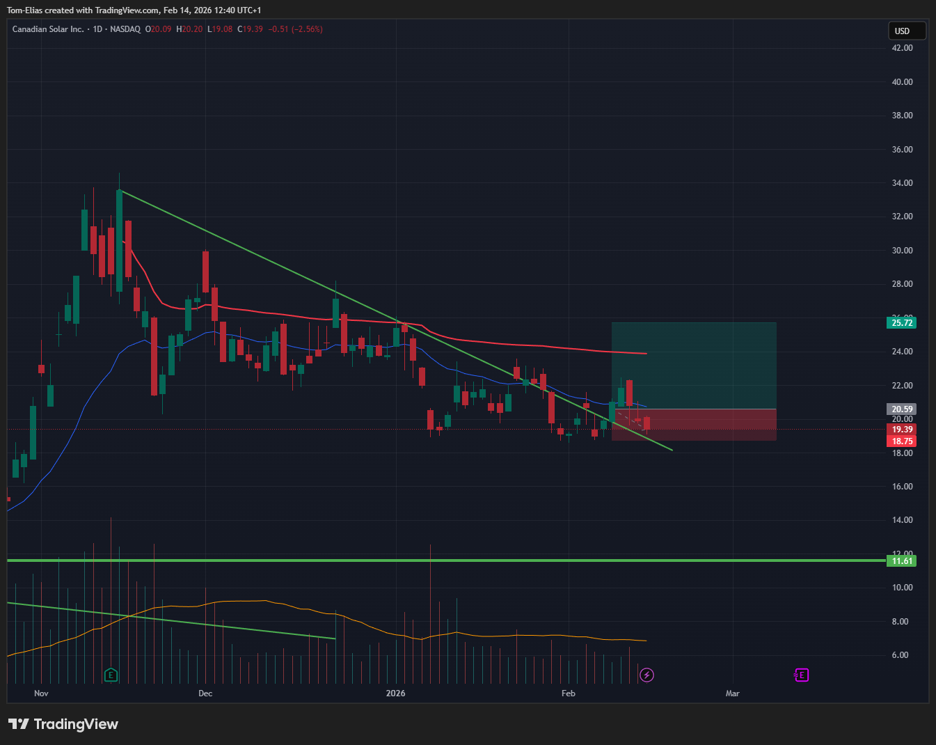 CSIQ - Daily: Another Solar name, this is beaten down big.