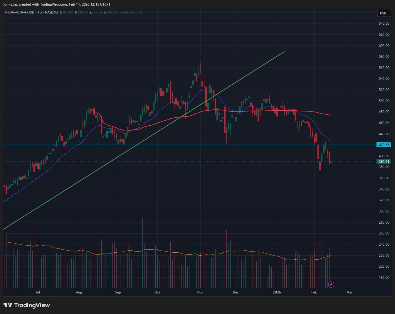 NVDA, PLTR and HOOD are the main retail darlings of this entire bull market, that started in early 2023.