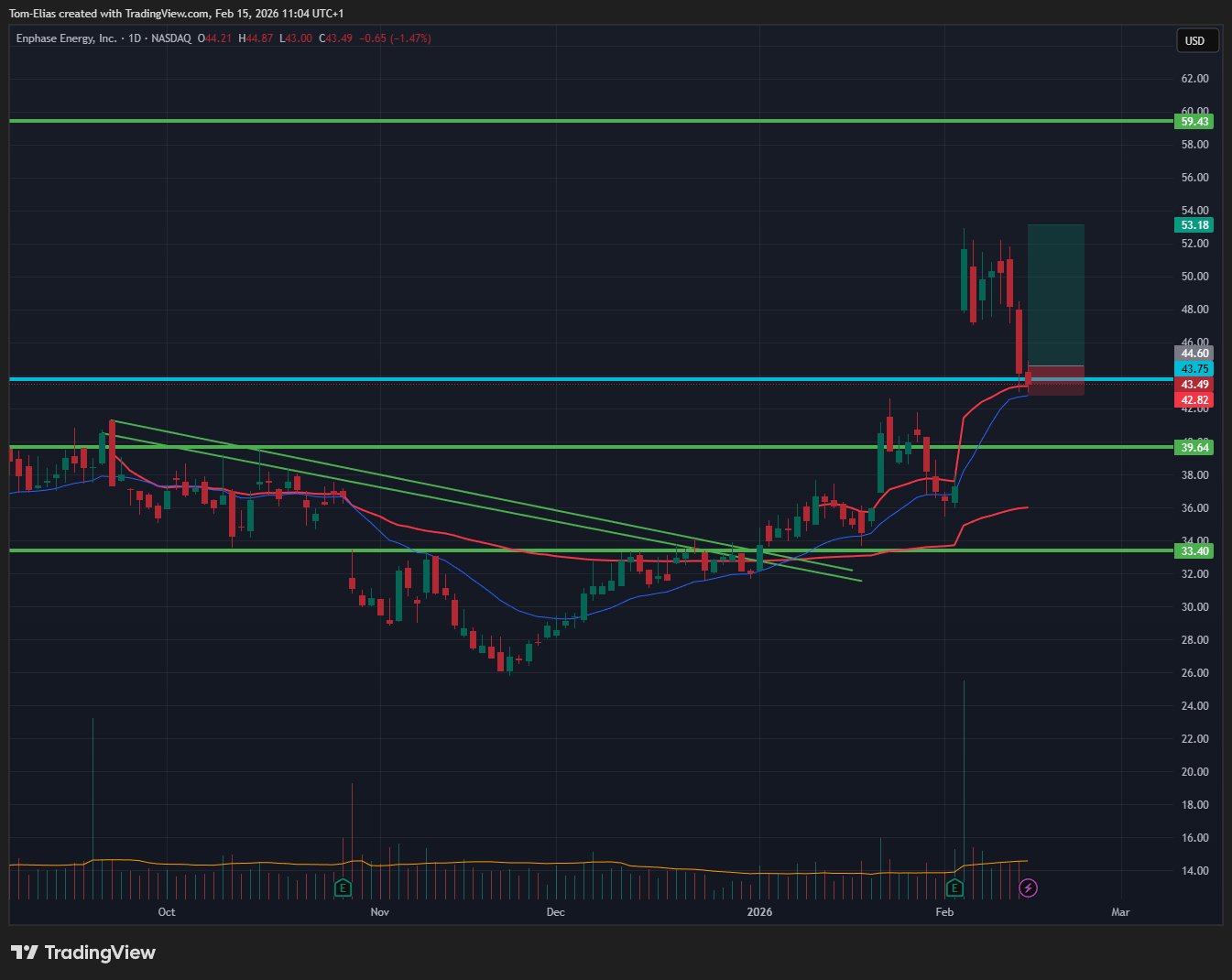ENPH - Daily: Energy Theme, sharp pullback after strong earnings gap