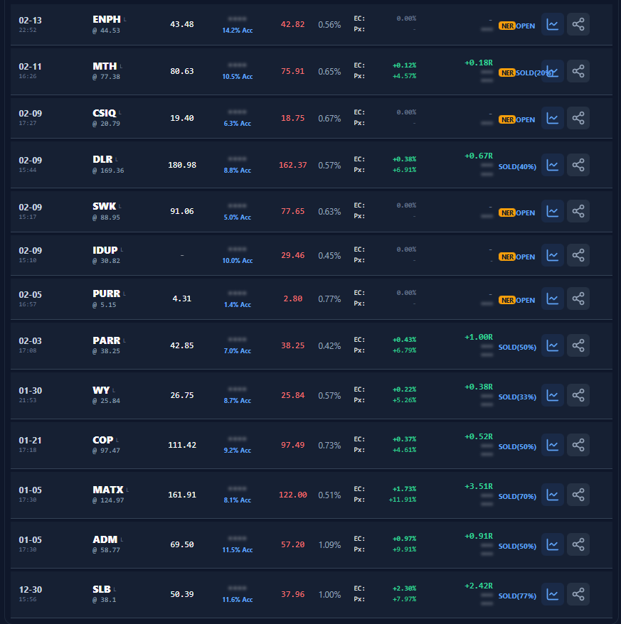 Last week I stop out of POU and BIR, these were mistakes, I had stops that were too tight for such illiquid names, the spread killed me. Lesson Learned!