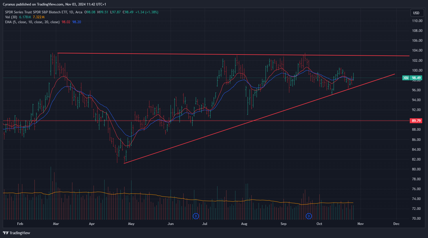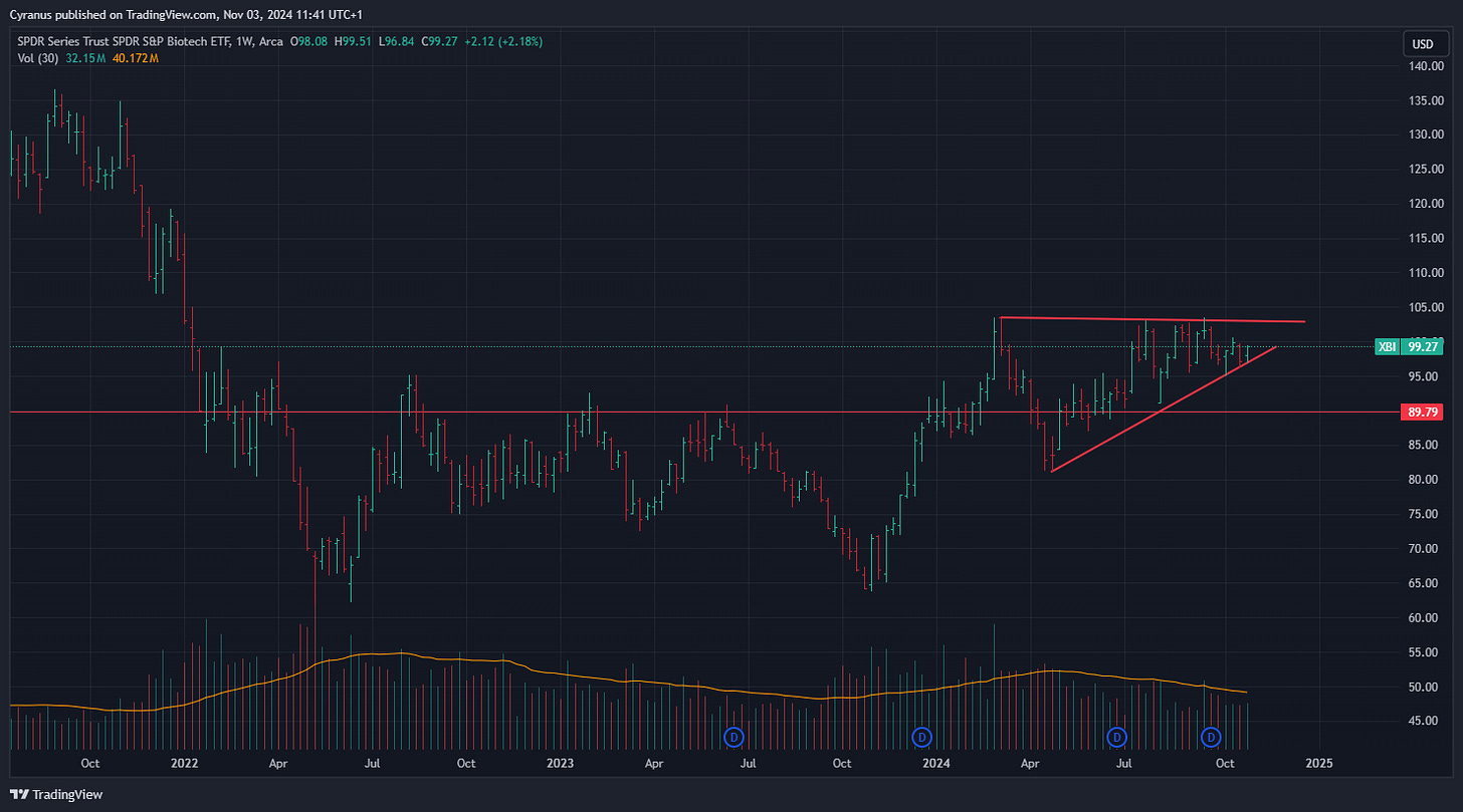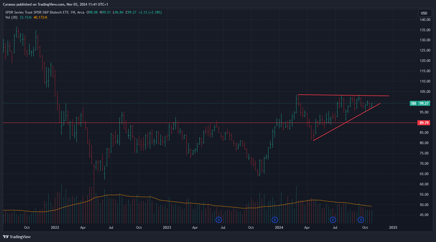 Many earnings for the Biotech sector are coming in the next two weeks, that could provide a catalyst for an explosive rally.