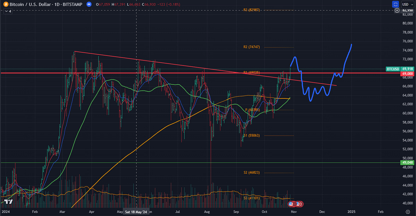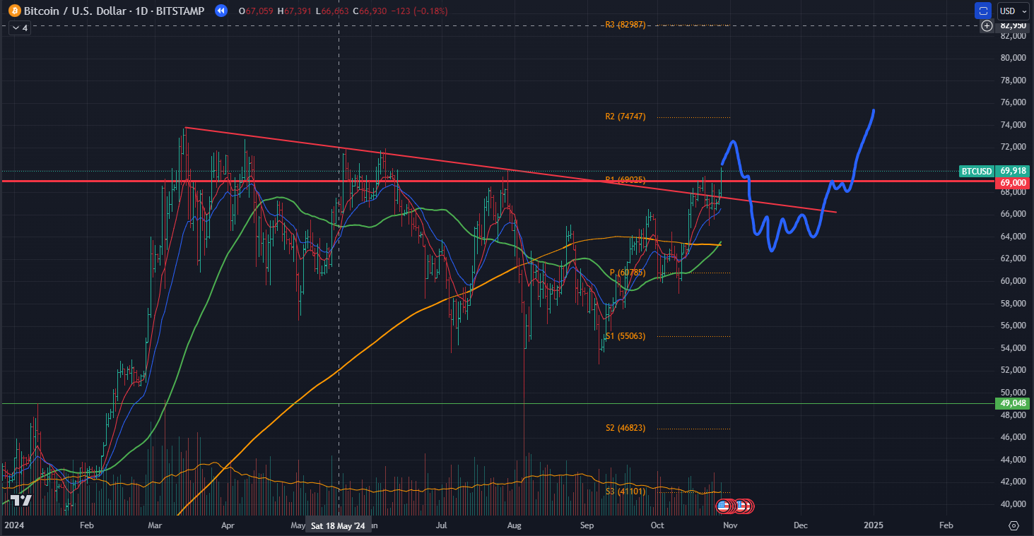 Trump has been leading in the polls and was being touted as the reason for the recent BTC rally, if he loses and BTC takes a dive into 64000$ I think we have a really good buying opportunity.