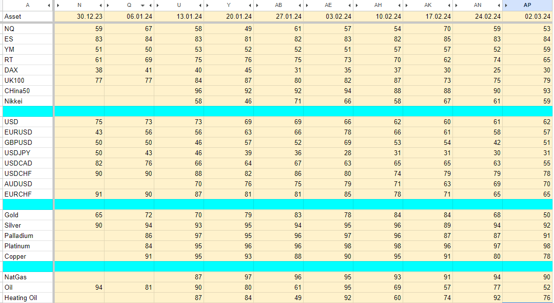 eTorians sold the NQ and Gold advance in a big way. I cannot remember them being as low as 50% Long on Gold.