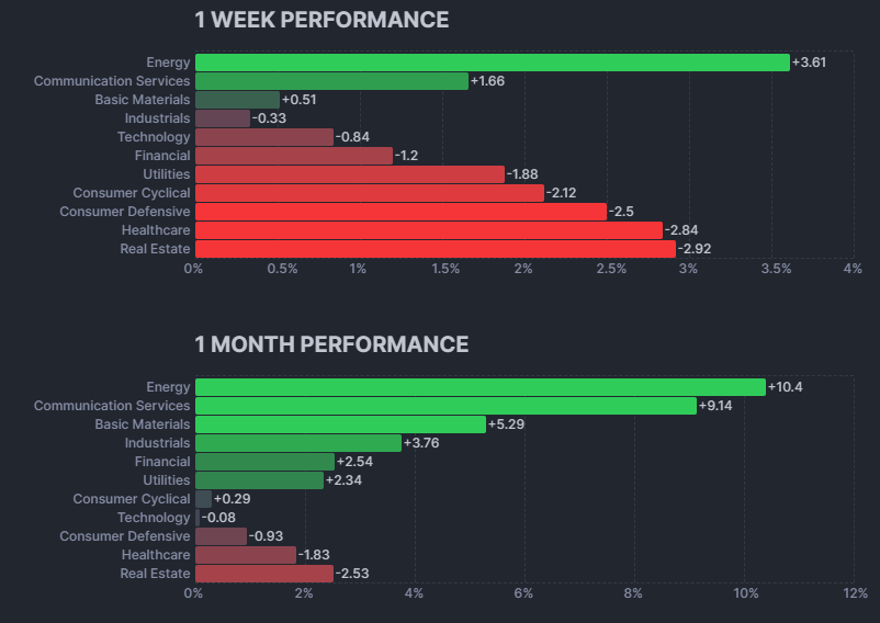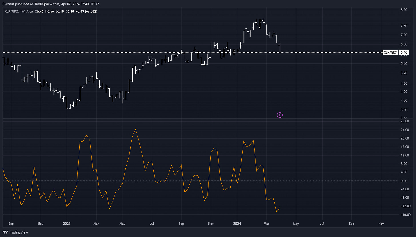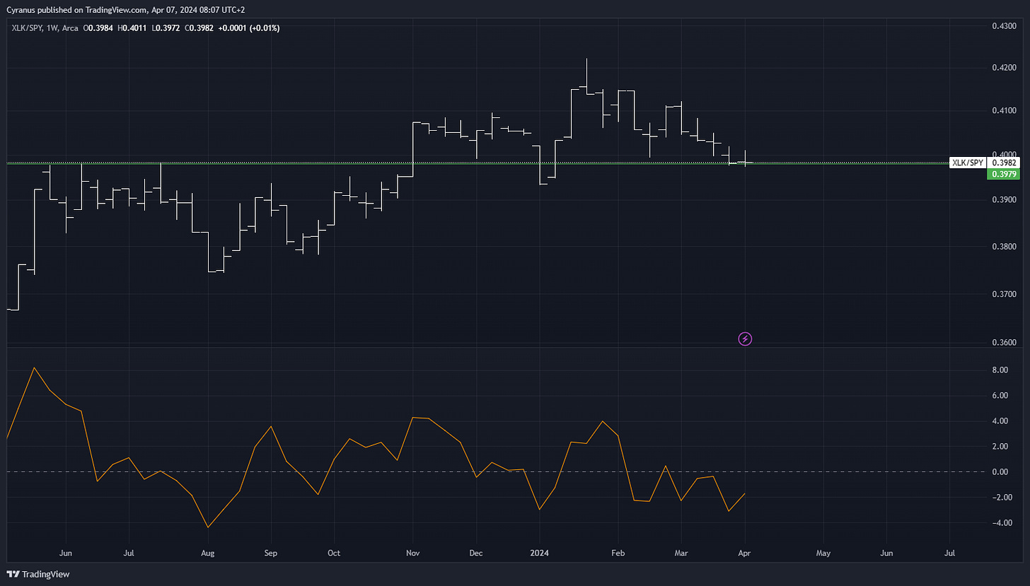 Interesting to note, that Rate sensitive sectors sold off, despite a Risk Off sentiment, this could mean for me that market participants are slowly transitioning towards a “higher for longer” rate policy view.