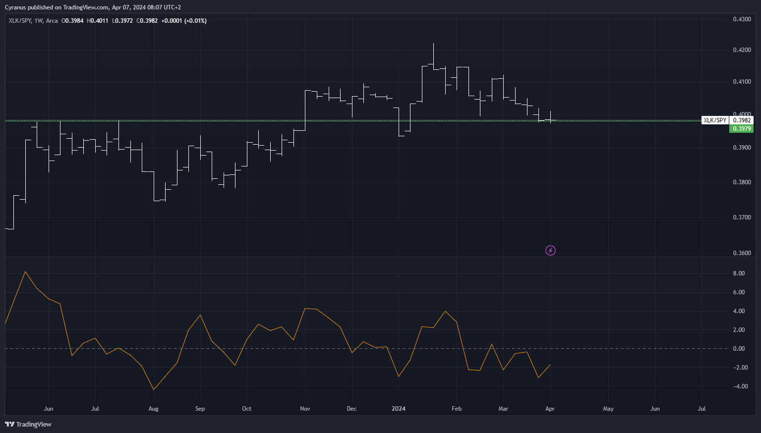 XLK/SPY: Risk Off, with the peak in late january