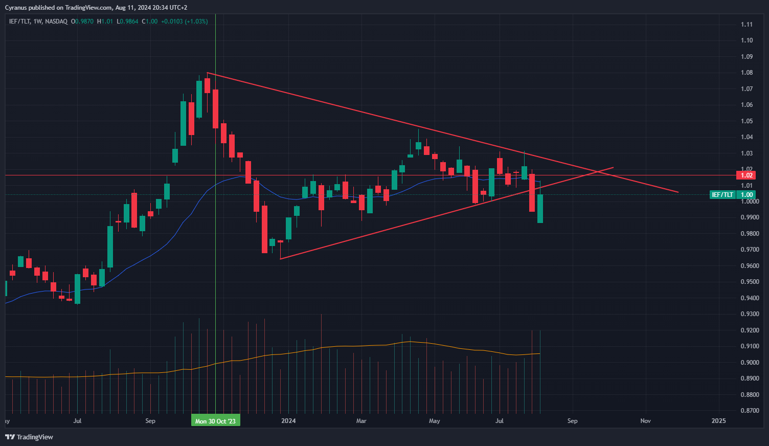 And based on what I am seeing right now, we are in weekly and daily uptrend for TLT, while TLT at the same time outperforms other Bond ETFs with shorter duration like IEF: