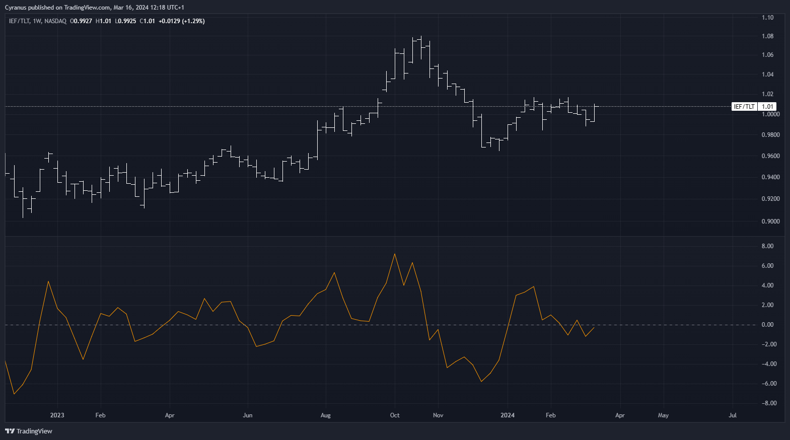 IEF/TLT: Risk Off still, although barely