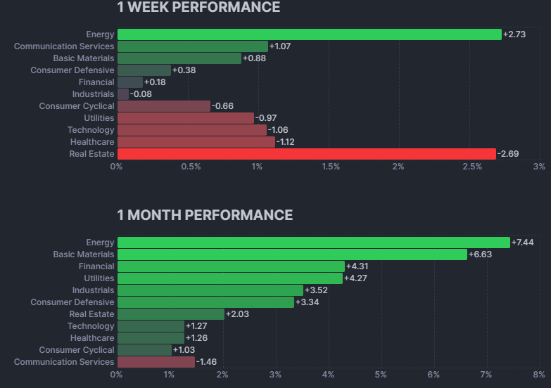 Weakest: Real Estate, Healthcare, Technology,