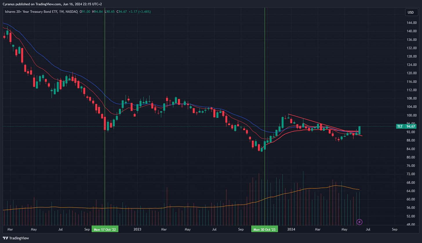 TLT has in my opinion broken out of its Downtrend and might have a Rally here.