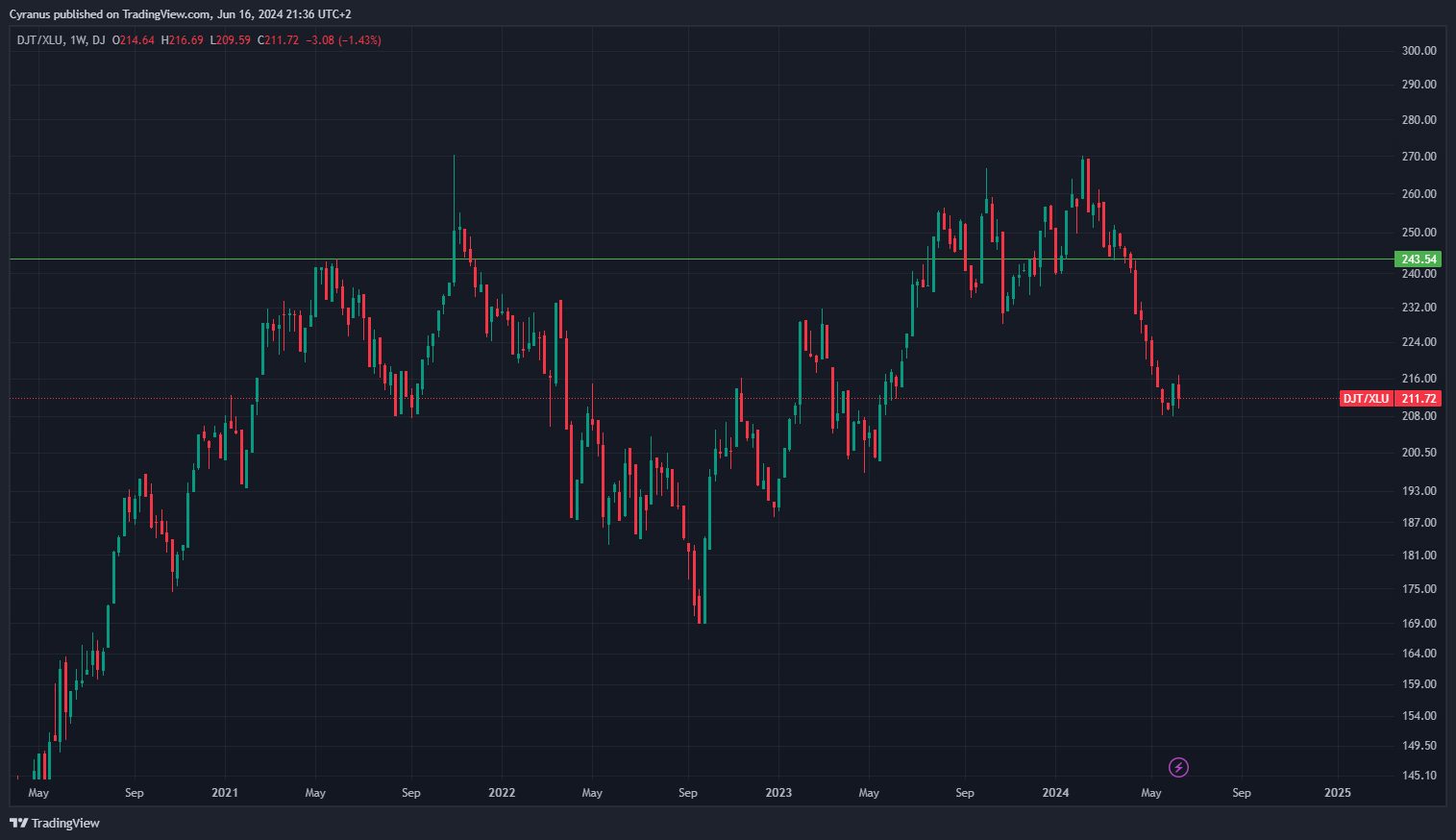 DJT (transports) getting smashed by XLU (Utilities):