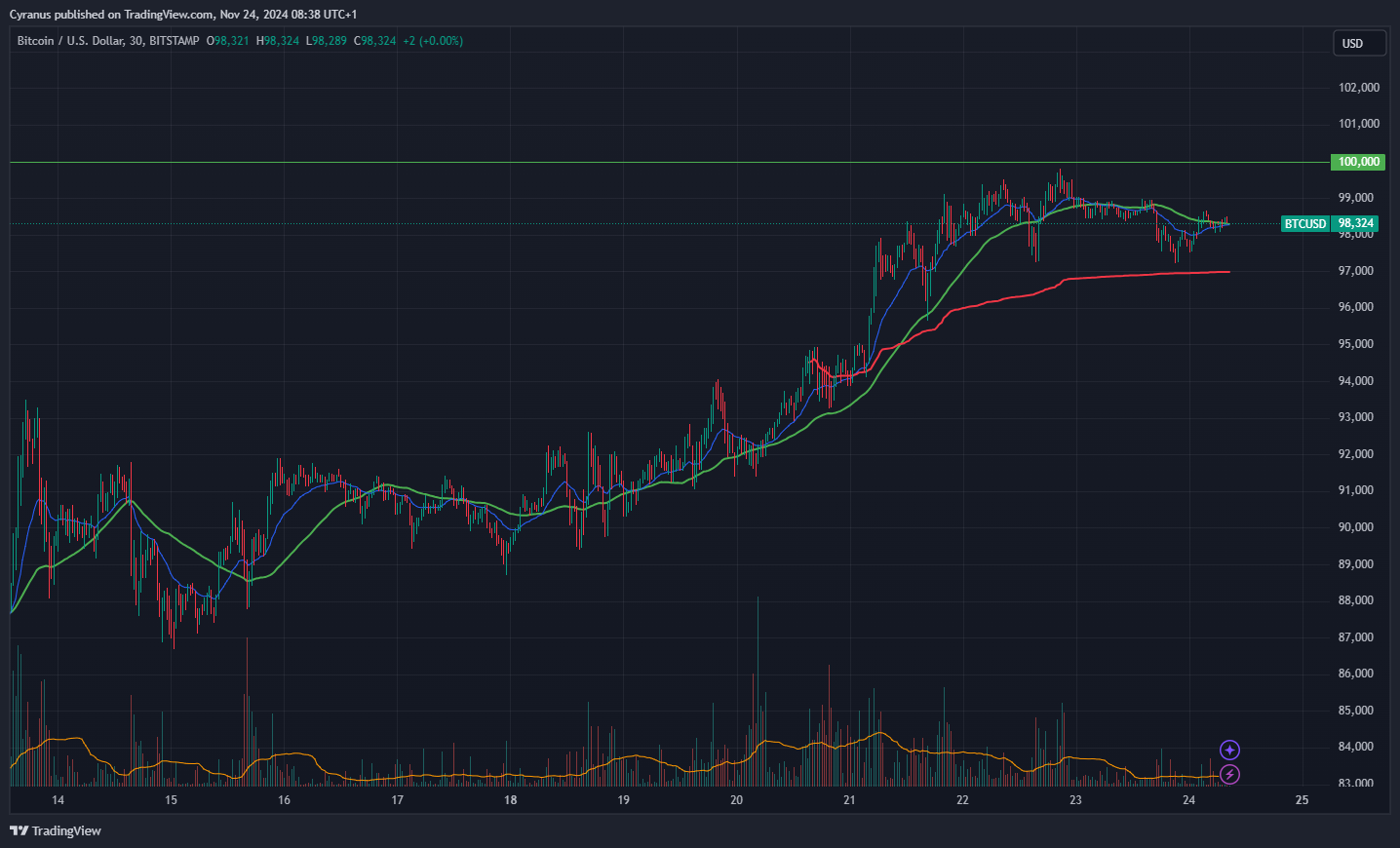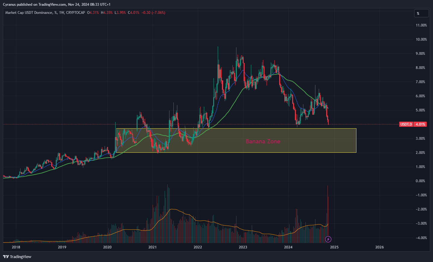 This is what the Crypto guys call the “Banana Zone” which is obviously bullish.