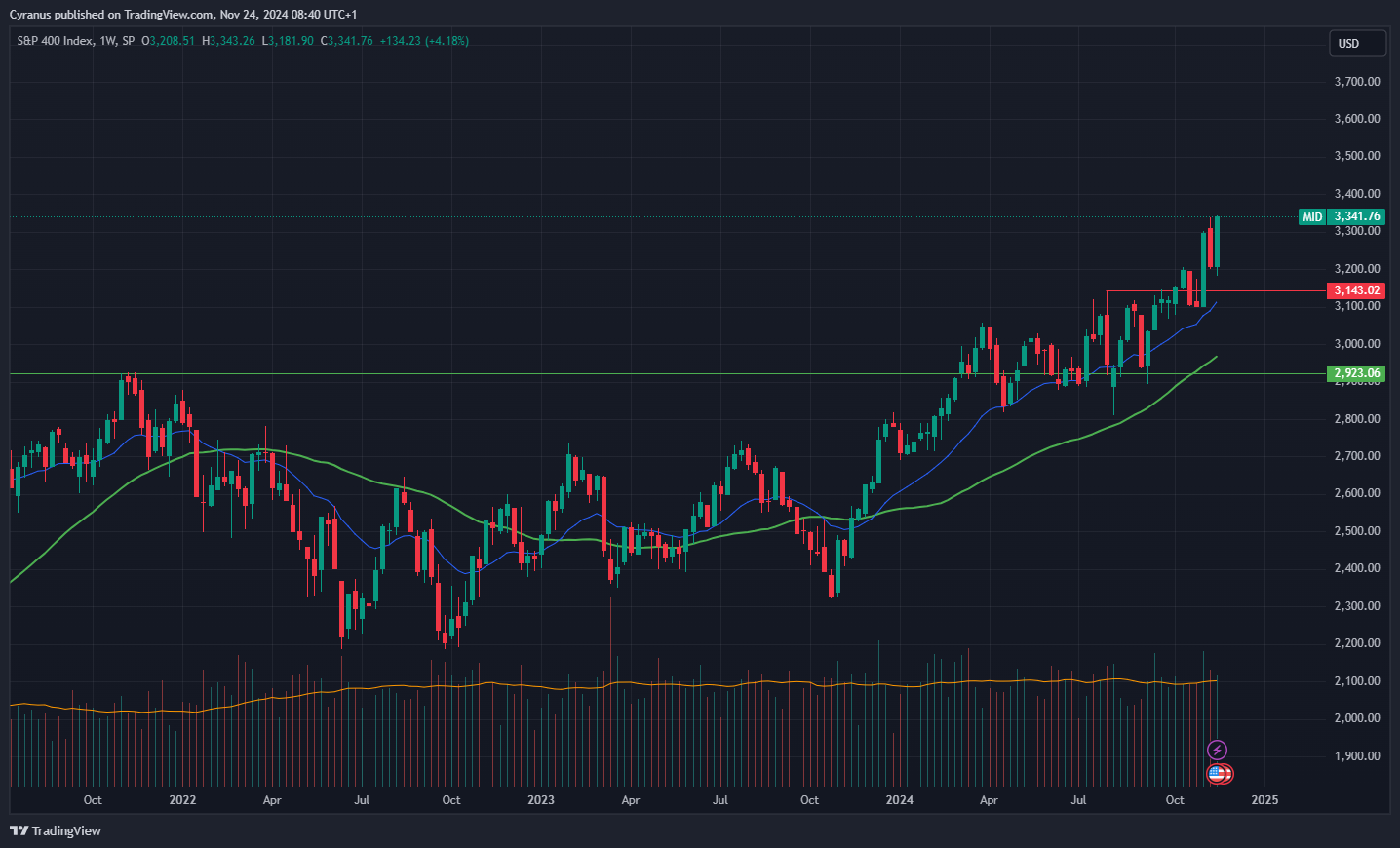 MID - S&P 400 Mid Cap ETF, Making and CLosing at a new ATH (for now). Very Bullish, I think Small Caps will follow soon.