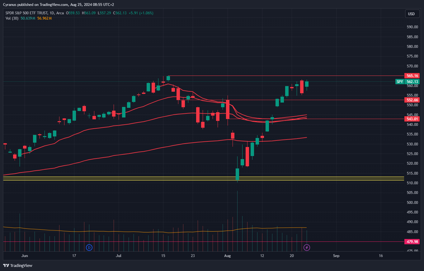 SPY - same engulfing candle, but stronger recovery on friday and now only half a percent away from new ATHs.